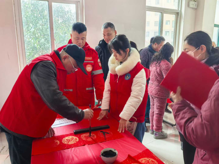 合肥市阳光应急救援队携手韶亮书画院,送春联活动温暖碧水兰庭小区