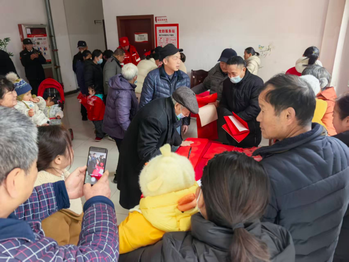 两位艺术家的笔触吸引了众多居民驻足欣赏,赞叹声不绝于耳。居民们热情参与,纷纷领到了承载着美好愿景的春联。