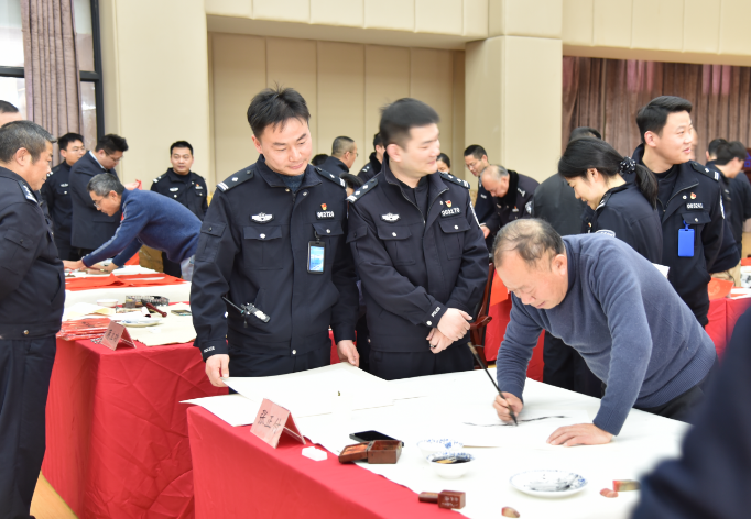 合肥市公安局监所管理支队的民警们对书画家们的到来表示热烈欢迎和衷心感谢。一位民警激动地说:“在新春即将到来的时候,收到这些饱含深情的春联和福字,让我们感受到了浓浓的年味和社会各界的关爱,也让我们更加有动力坚守岗位,守护好一方平安。”
