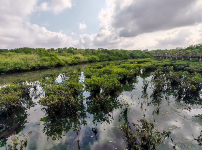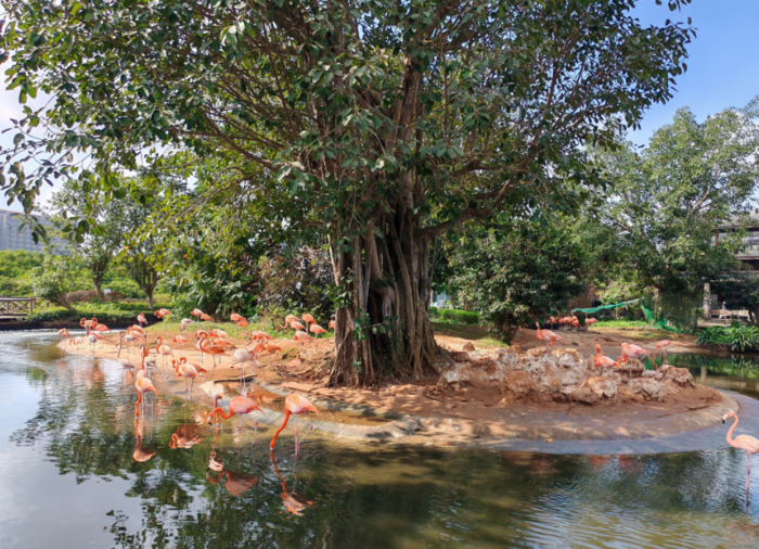 最有代表性的地标,如“红树湾湿地公园”,是北纬19度的生态奇迹:一望无际的红树林,在潮汐中舒展成根系的艺术图腾,白鹭、夜鹭、池鹭、苍鹭掠过海面,与成百上千叫不上名字的鸟类,在桐花树、正红树、红海榄、秋茄等树冠间翩翩起舞、捕食筑巢和繁衍生息,而树根下的招潮蟹,密密麻麻地钻出沼泽浅水面,举螯与鸟群热情地打招呼。