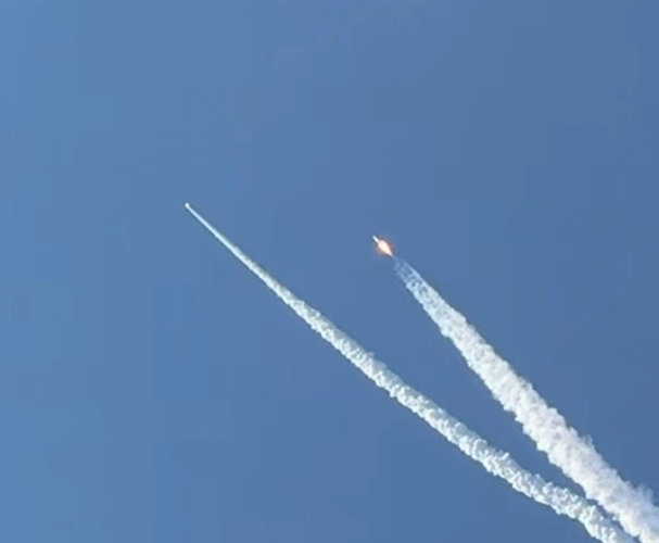 后来,我回放时才发现,当火箭几秒钟飞到我的头顶上方时,还有火箭拖着长长的龙形尾烟时,我终于留下了人生第一次最宝贵,最有意义的现场记忆。那一声巨响,那笔锋一样的火舌,那长长的白色尾烟,那箭体分离的瞬间,那穿越蓝天白云的雄姿,那万人的欢呼和喜悦……此刻,这一切的一切,怎能不让做为一个中国人,而感到无比的自豪和骄傲呢?