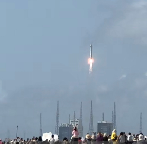 这时,离火箭11点准时发射仅剩三十秒了!我喘着气打开手机视频拍摄功能,刚举起手机,就听见远处传来“啪”一声脆响,火箭发射升空了!只见火箭底部喷射的火焰是白色的,比正午的阳光更炽热,它像一柄燃烧的利剑刺向苍穹,越飞越高,越飞越远,而尾部划出的一道龙形白烟,久久不肯散去。现场爆发的惊天动地的掌声和欢呼声,压住了不可一世的海浪声。很多人久久仰着头,张着嘴,像是一群在旷野里,第一次看见银河的孩子。也许是紧张,或许是激动,我浑身微颤,双手发抖,居然一时找不到拍摄目标,断断续续地拍了一分钟左右的视频,在发给朋友圈的视频中我写道“不来现场,永远不知道什么叫震撼!”