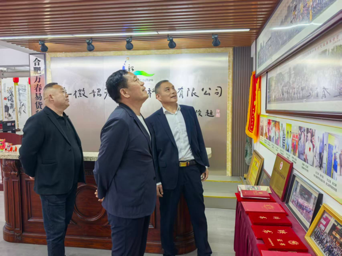 安徽报道网讯 4月11日下午,淮南古沟商会会长、淮南市恒发新型建材有限公司董事长聂有江,副会长、淮南市春风粮油食品有限公司董事长陶余保、淮南顺鑫牧业有限公司董事长方耀,淮南市太平阳光粮油工贸有限公司董事长王智,安徽筑础建筑工程有限公司董事长蔡会,六安振宇模具有限公司董事长蔡维丰,安徽淮南王酒业有限公司刘文婷一行,莅临安徽韶亮文化科技有限公司参观交流。