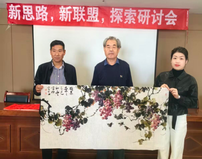 最后,主持人关民先生总结道:今天的研讨会主题就是“探索”二字,就是一群志同道合的朋友,在一起共同探索未知世界,探索当下求生与发展的经营之道。研讨会结束后,著名画家邵学良先生、崔学坤先生,为主办单位合肥新美酒店,现场泼墨留下精美的墨宝。