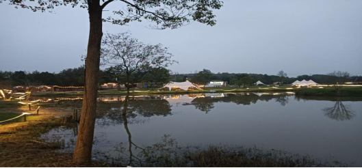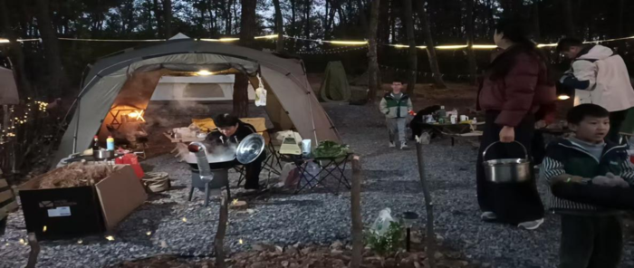 章经理介绍道:今天晚上的活动程序安排是:18:点至20点烧烤畅享品尝会,20点至21点音乐会,21点至22点自娱联谊会;22点至23点30分猜灯谜竞赛会;23点30篝火晚会点火仪式开始;23点40分烟花开放狂欢会开始至0点20分跨年活动结束。章经理还向我们透露西乡禾园森林露营自搭区,帐篷露营小社团建设发展情况。她说:我们的园区东山规划二十户落营快竣工成型。西园区规划的舒适型三十户即将启动。