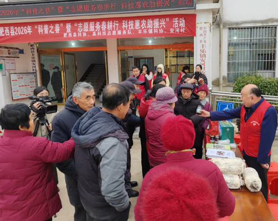 2026年3月4日,肥西县珍稀食用菌协会会长、科技小院院长,被誉为“蘑菇大王”的丁伦保,出席了肥西县科协在丰乐镇安河村举办的“科普之春暨志愿服务春耕行、科技惠农助振兴”活动。此次盛会,正值第63个学雷锋纪念日,丁伦保身着志愿者制服,携带蘑菇菌袋、各式蘑菇及其深加工产品“蘑菇大王丁伦保”酱蘑菇,为村民带来了一场生动的蘑菇种植技术科普。