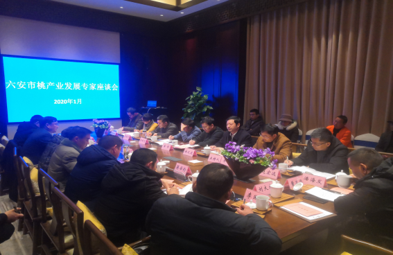 (国家桃体系首席科学家姜全等体系相关岗站老师、安徽省人大常委会农业与农村工作委员会副主任徐义流、六安市副秘书长赖红梅等相关领导专家针对六安桃产业发展进行专项座谈研讨)