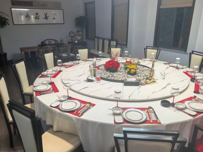 酒店内部共设置六个大小不等的包厢,装修采用新中式简约风格,环境优雅。最大包厢可容纳十六至十八人,两个小连台包厢则适合八到十人小聚。无论是家庭聚餐还是商务宴请,都能在这里找到合适的场所。