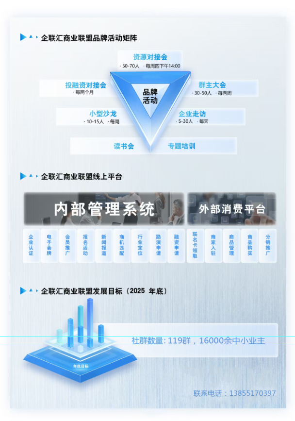 据了解,“企联汇商业联盟”,由本土领军企业发起,致力于构建一个资源共享、人脉互通、合作共赢的商业生态圈。目前,联盟已拥有119个社群,累计服务中小企业主16000余人,旗下品牌活动丰富,旨在通过资金、项目、市场等商业要素的对接,助力企业发展。