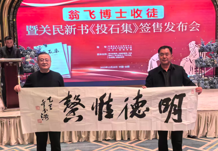 2025年12月28日下午,翁飞博士收徒暨关民新书《投石集》签售发布会,在合肥望湖城同庆楼太阳宫隆重举行。