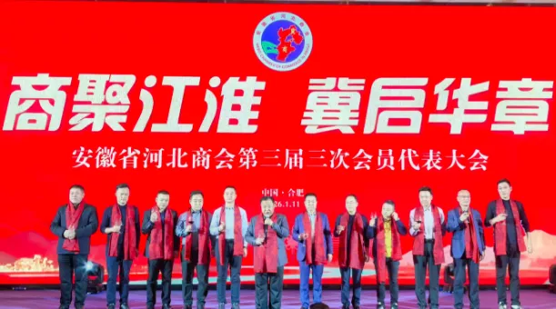 2026年1月11日,以“商聚江淮,冀启华章”为主题的安徽省河北商会第三届三次会员代表大会在合肥白金汉爵酒店隆重举行。来自全国各地的商会会长、秘书长、企业家、会员等400余名嘉宾欢聚一堂,共襄盛举。