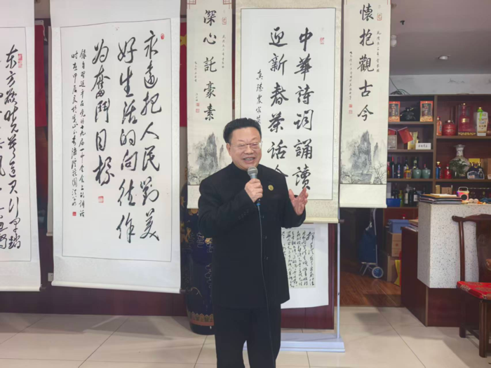 活动现场,气氛热烈,欢声笑语不断。活动伊始,主办方汪学明致辞,表达了对新春佳节的美好祝愿,并亲自朗诵了诗词,为活动拉开了序幕。