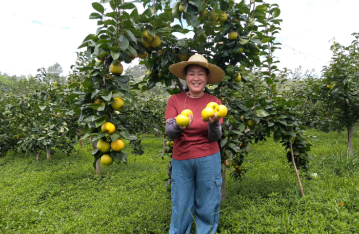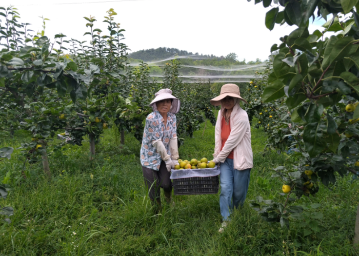 在说到如何提高梨子品质时,方玲告诉记者,“我家果园种植的皇冠、翠玉等梨树,自7月迎来采摘,采摘期至8月初。通过多年的梨园技术改进,按照3棵主杆型梨树,因株距窄,又太密,并将中间一棵迁移,改为开心型,便于日光照射、通风通气,易生长,果肉鲜嫩,香甜可口,甜度比普通梨高很多。目前每亩产量在3000斤左右,收入达7000余元。”