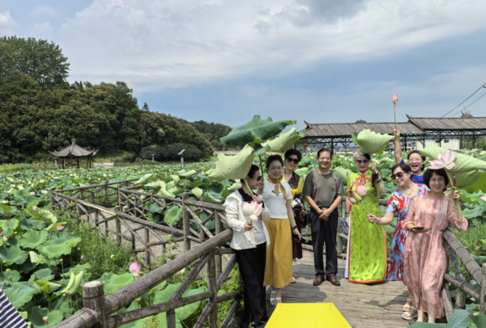 仪式结束后,与会嘉宾参观了3500亩的文翁研学旅游小镇,领略了文翁故里的历史韵味和千亩荷塘的美丽风光。八月荷花盛开,如粉衣少女,或含羞半遮面,或自信展笑颜,美不胜收。在荷塘边,嘉宾们纷纷拍照打卡,采摘,享受着如诗如画的自然美景。荷塘上升起的烟雾与何仙姑雕塑相映成趣,仿佛将人们带入了一个梦幻般的仙境。