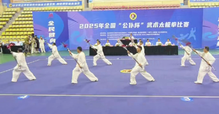 比赛现场,太极拳世界冠军、参赛队员以及当地武术爱好者展示了陈式、杨式、武式、吴式、孙式以及二十式太极拳、八法五步、武当九式太极拳等丰富内容。他们以舒展的招式诠释太极精髓,用默契的配合展现了刚柔之美。