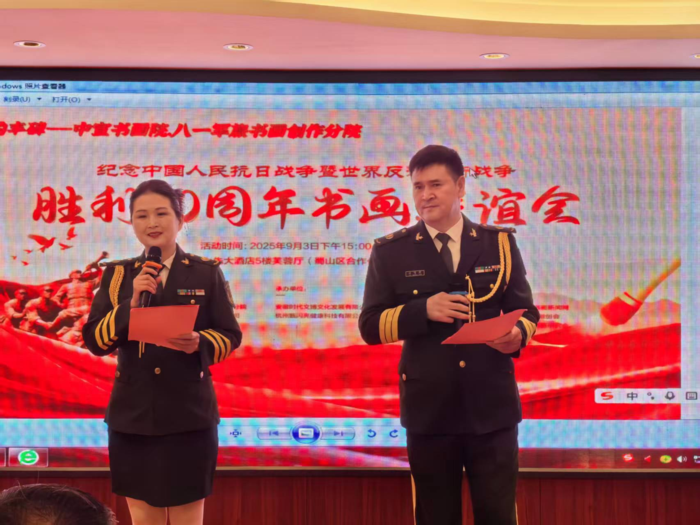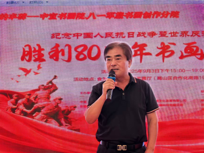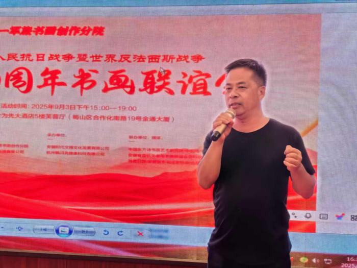 9月3日下午,在合肥蜀山区合肥食为先酒店,百余名书画艺术家、领导嘉宾、企业家、媒体人齐聚一堂,共同参加了由中宣书画院.八一军旅创作分院华东(安徽)分院主办的“和平的丰碑——纪念中国人民抗日战争暨世界反法西斯战争胜利80周年书画联谊会”。此次活动旨在缅怀历史,弘扬和平精神,纪念抗战胜利80周年。