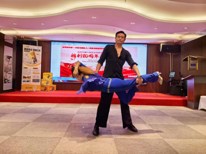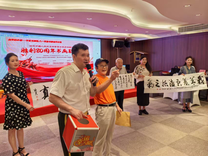在活动的高潮部分,老兵文工团带来了小合唱《保卫黄河》,激昂的歌声唤起了在场所有人的爱国情怀。随后,活动进行了演艺、公益书画拍卖、舞蹈、抽奖等环节,现场气氛热烈,掌声不断。