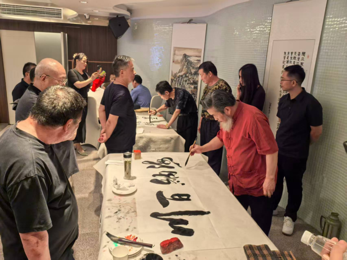 活动现场,书画名家们挥毫泼墨,创作交流,展示了一场视觉与文化的盛宴。活动由司峰、华蔚主持,中宣书画院.八一军旅创作分院华东(安徽)分院名誉院长、著名军旅书法家、诗协主席国㮓,以及多位领导嘉宾出席了此次活动。