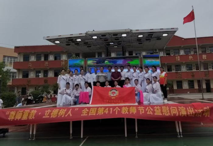金秋送爽,瓜果飘香。9月10日,合肥市肥东桥头集乡贤文化研究会、复兴同乡联谊会联合肥东县桥头集镇走进桥头集学校,举办“尊师重教立德树人”全国第41个教师节公益演出活动,并以开场舞蹈《美丽中国》拉开了帷幕。一首首响亮悦耳的曲调和独特戏剧旋律动人心弦,为现场观众展示了一场丰富多彩、寓教于乐的文化盛宴,让文化赋能乡村振兴,促进教育事业健康发展。
