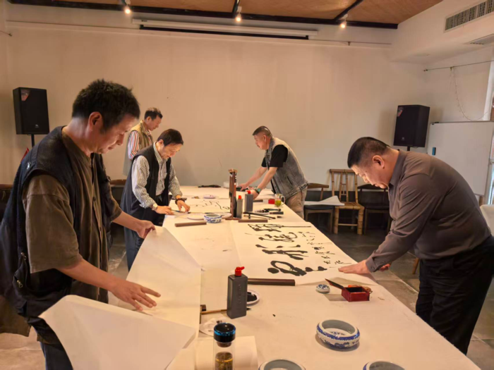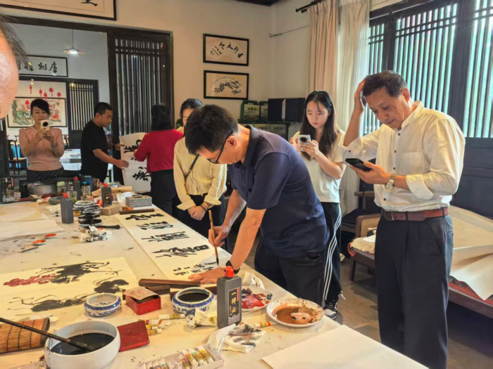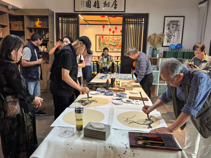 随着致辞的结束,书画爱好者们纷纷拿起画笔,挥毫泼墨,开始了创作交流。书法家的笔触细腻,墨色韵味十足;书画家的画作色彩斑斓,线条流畅。活动现场气氛热烈,笔会成为了艺术家们展示才华、增进友谊的盛会。