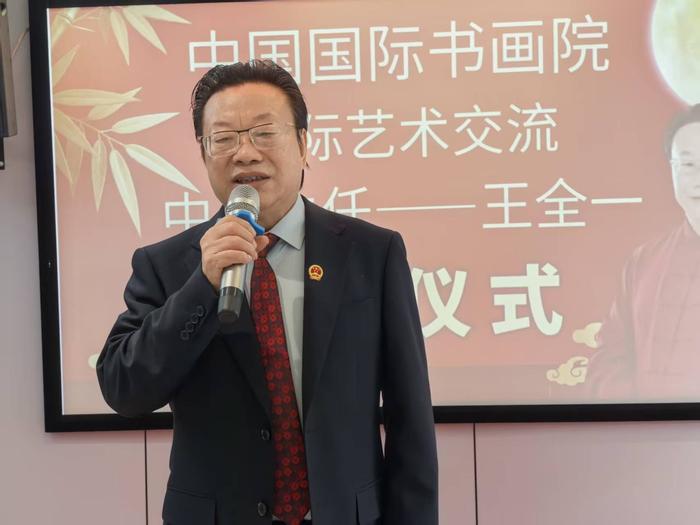 王全一院长,现任中国国际书画院名誉院长、国际交流中心主任、安徽分院院长,涡阳海灯武术学校校长,连续三届涡阳县政协委员。安徽省政府咨询机构对外交流合作协会执行副会长 ,中央国家机关书协会员,中国国画院华东分院执行院长,中国书画院安徽分院行政院长,中国翰林书画院副院长、合肥分院院长,香港美术家协会副主席,当代人物网编辑、安徽报道网副总编辑、合肥影响力编辑部主任。2024年荣获中国书法教育大会“金孔雀”奖,2024年荣获合肥影响力-中国城市品牌媒体“优秀采编”称号,曾出访16个国家进行艺术交流。集文艺外交家,武术教育家,书法家于一身。
