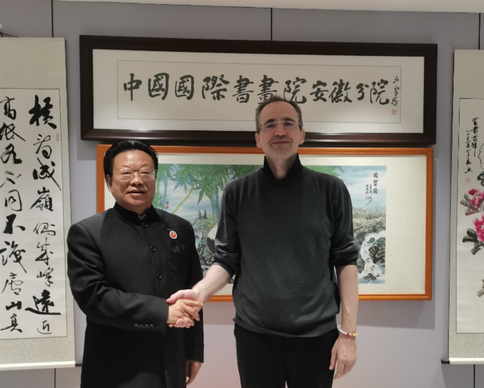 2025年10月11日下午,意大利学者保罗先生怀着对东方文化的浓厚兴趣,慕名来到合肥,拜访了中国国际书画院名誉院长,安徽分院院长,国际书画院艺术交流中心主任,书法家教育家,武术教育家,海灯法师弟子——王全一老师。