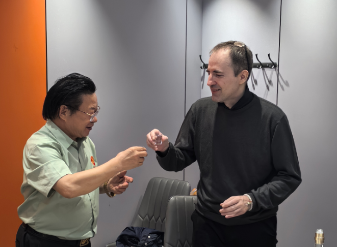 保罗先生对王全一院长的技艺表示深深的敬佩,鞠躬致意,并敬茶品酒。在中国科技大学董步伦老师、安徽龙方律师事务所吴锋主任、翰林书画院张萍院长、汇鑫源酒店刘涛董事长等人的陪同下,保罗先生与王全一院长共进晚餐,品尝了地道的徽菜,畅饮古井镇的石斛液酒,享受了一场中国传统文化的大餐。