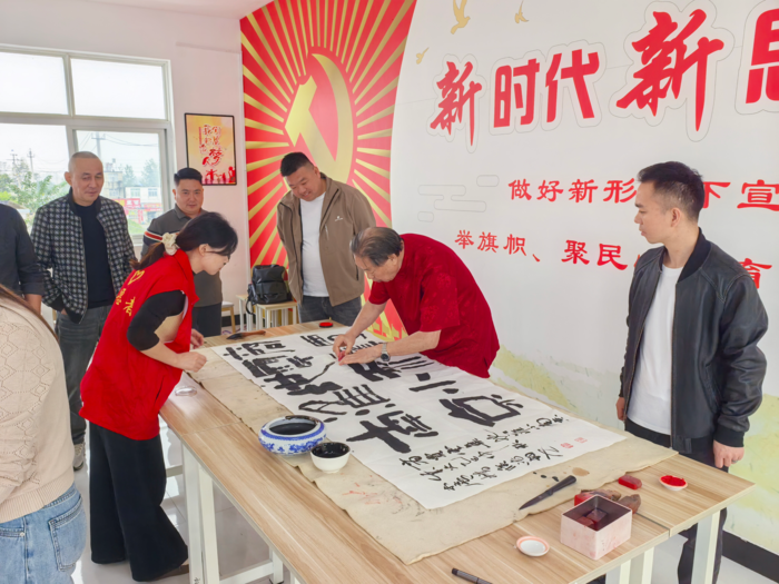 在炉桥镇文化站,侯鸿钧现场挥毫泼墨,创作了《将相故里大美炉桥》、《商贾云集地、江淮小南京》、《炉桥镇史馆》等十余幅书法作品,其笔力雄健,墨韵生动,展现了炉桥镇的独特魅力和历史底蕴。