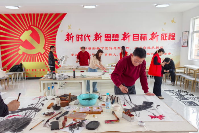 中国国画院华东分院副秘书长徐作荣现场创作牡丹花等作品,以其细腻的笔触和鲜明的艺术风格,为炉桥镇的文化活动增添了艺术色彩。