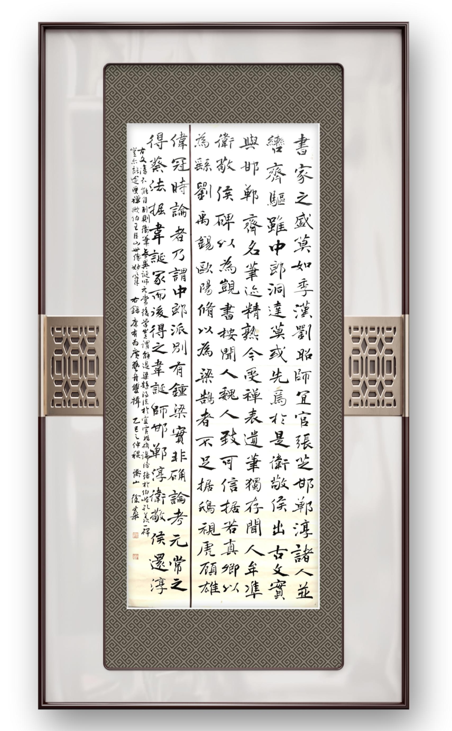 诸体皆工的创作实践中,徐华的隶书尤为世人称道,其“隽秀完美、沉稳厚重”的风格堪称汉字演变枢纽的生动诠释。他取法《乙瑛碑》的严谨端庄与《礼器碑》的清刚秀逸,又融入《好大王碑》的宽博气象,笔下横画如千年古柏之枝,竖画似擎天玉柱之姿,转折处兼具金石之力与毛笔之韵。