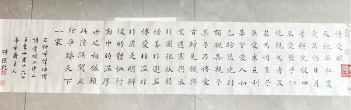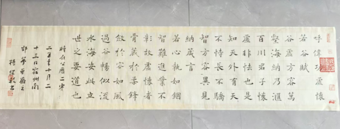皖北大地的风土人情更成为其艺术的精神底色,澥河岸边的质朴厚重,潜移默化地融入其笔墨,使其褚体楷书多了沉雄之气,行草作品添了浩然之风,形成“接地气、有底气”的艺术品格。这种创新不是刻意求变,而是传统技法与生命体验自然融合的产物,如《北京赋》那般,在古典文脉中彰显磅礴的时代气息。