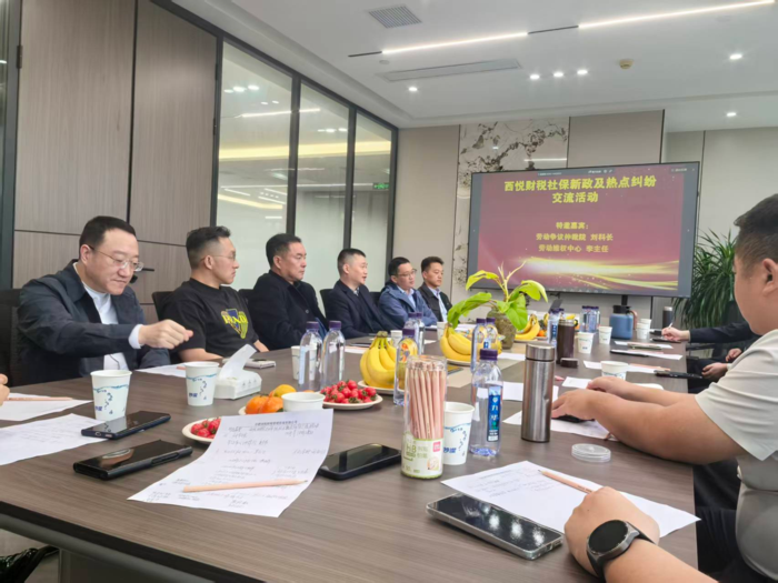 10月25日下午,在西悦财税公司董事长邵培、总经理尹悦亲自邀请下,一场主题为“社保新政及热点纠纷”的交流活动在蔚蓝商务港F楼公司办公室成功举办。