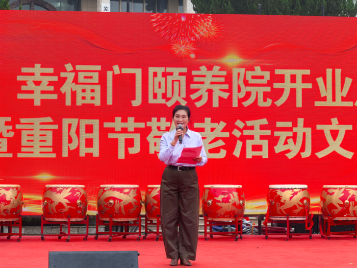 在开业典礼上,安徽幸福门颐养院院长阮有梅发表了精彩的致辞。阮院长首先对各位领导和嘉宾的到来表示热烈的欢迎和衷心的感谢。她介绍,幸福门颐养院占地6000余平方米,设有138张床位,是一座四星级标准的高品质颐养院。它不仅是繁阳镇政府、区民政局的招商引资重点项目,更是浙江商会繁昌分会董会长与区委瞿辉书记等领导“牵线搭桥”的结果。